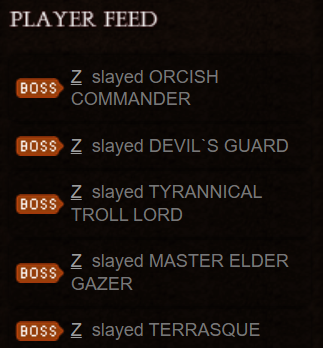 While I wouldn't turn down new content, the more practical response would be to buff what you currently have to align itself with another buff recently implemented (the improvements in the Trials of Valour). You're able to generate significantly more Valour now and ToV runs have become popular again because the incentive to participate has been increased considerably. This gives you more access to Champion items, for example. Unfortunately, Damned Negamare doesn't guarantee Champion. I'm sure you have, just as I have, witnessed many drops where no Champion drops at all, or a single rare female item drops (not that female items shouldn't drop, I'm purely making the distinction based on the difference in value/demand). This feasibly could occur on multiple consecutive cycles as well. ![]() For the purpose of this response I traced a few lower end bosses to speak to your point about lower level bosses and their potential in being pointless. There are indeed a good amount of lower bosses which are indeed pointless, even for their relative level range. Yes, they are killed by players, but I wasn't able to find: Grath the Werewolf, Gorgg, Lifeless Fallen Troll, Orcish General, King Kobold. Why? Those bosses have incentives. Small revisions could make them all worthwhile without creating any imbalance to things overall.